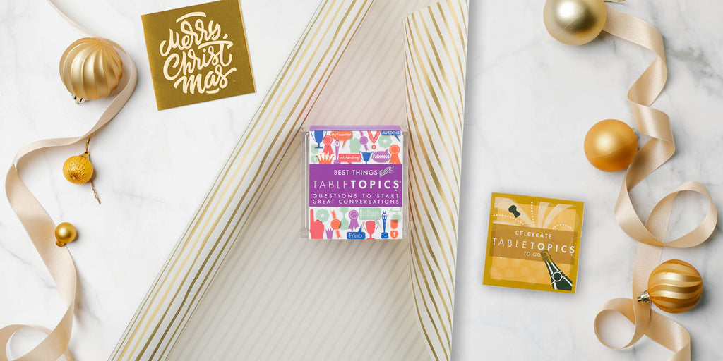 TableTopics® sets are fun conversation starters for any and every occasion. Our thought-provoking questions have helped millions of people spark engaging, meaningful conversations. Each themed set is full of questions you would have never thought to ask, and the best part is that you’ll get to know your friends and family even better. So, skip the small talk — enjoy connecting through great conversation.