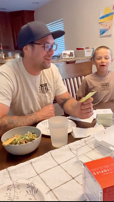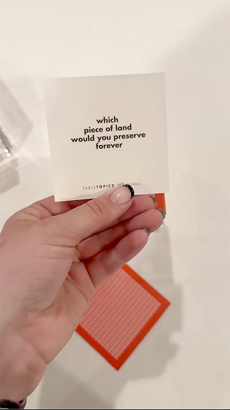 Designed by Propp + Guerin, an award-winning graphic design company based in the San Francisco Bay Area, the beautiful cube container holds the perfectly proportioned 3 x 3 inch cards. We wanted TableTopics® to be something you wanted to keep on your dinner table, kitchen counter, or coffee table all the time.