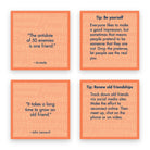 Bonus Content: We’ve included heartwarming and amusing quotes, song lyrics, and tips on the cardbacks. They’re all about friendships—how to make them, how to keep them, and how to strengthen them.