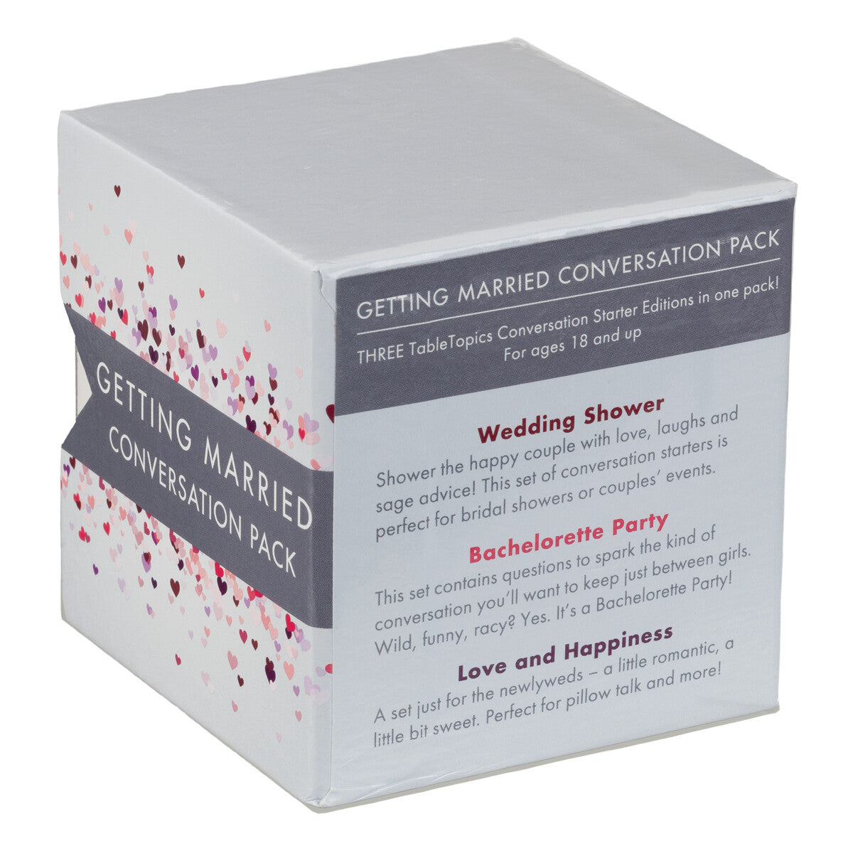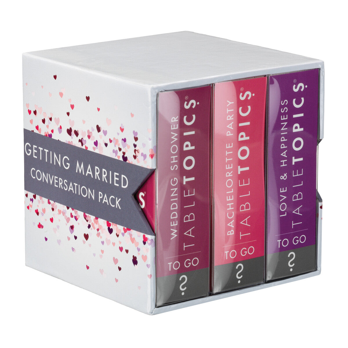 Wedding Celebrations: Spark meaningful conversations at bridal showers, bachelorette parties, or weddings with this set of three TableTopics® To Go, each designed to create unforgettable moments. Each set is packaged in a clear plastic slipcase, making it easy to take to any wedding or celebration.