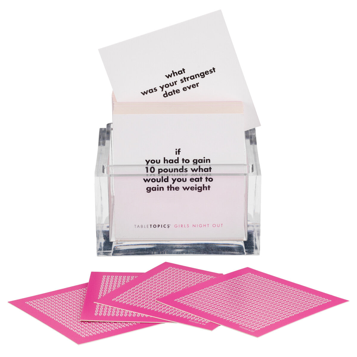 TableTopics® are fun conversation starters for any and every occasion. Our thought-provoking questions have helped millions of people spark engaging, meaningful conversations. Each themed conversation starter set and Prompted™ Journal is full of questions you would have never thought to ask, and the best part is that you’ll get to know your friends, family, and even yourself better. So, skip the small talk — enjoy connecting through great conversation.