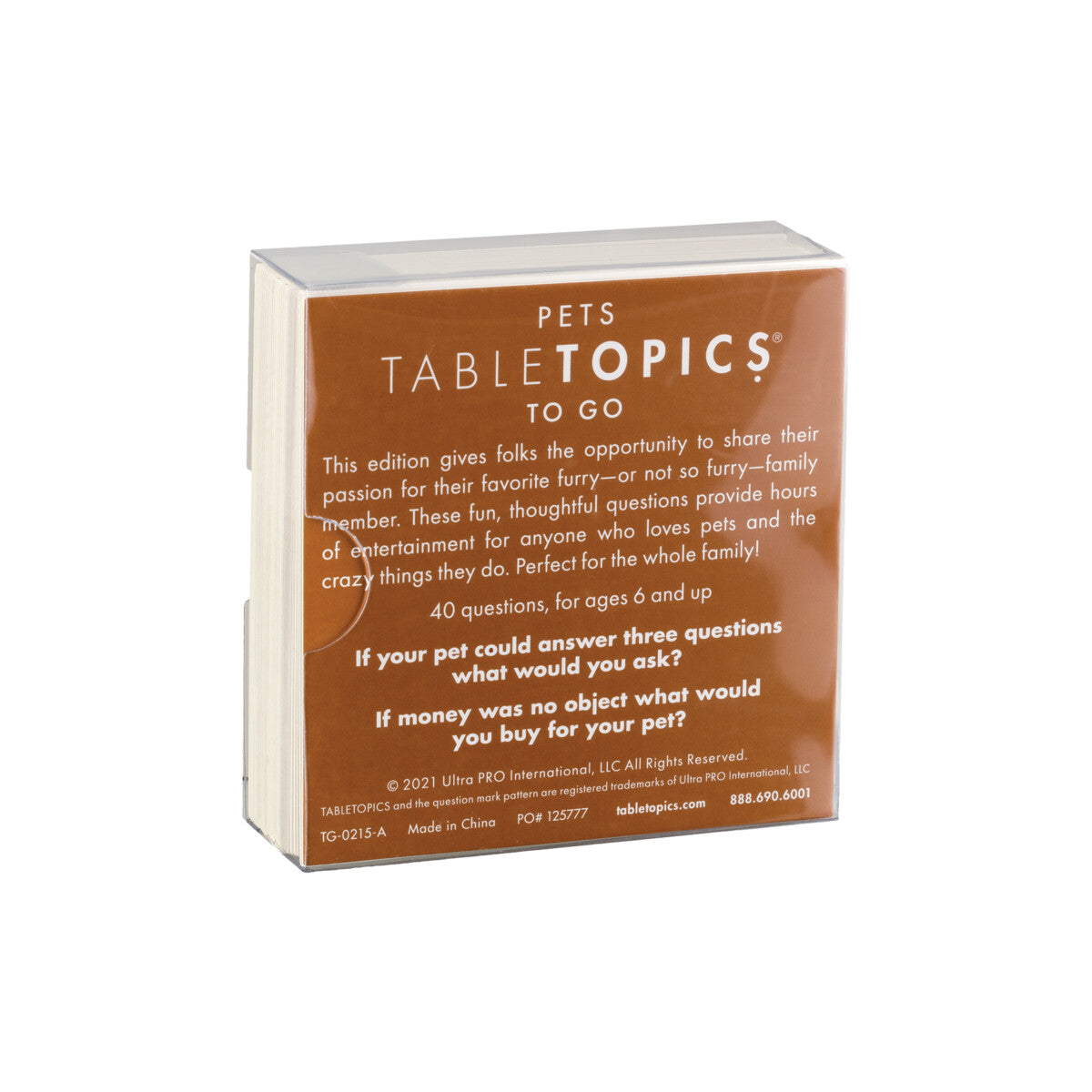 TableTopics® are fun conversation starters for any and every occasion. Our thought-provoking questions have helped millions of people spark engaging, meaningful conversations. Each themed conversation starter set and Prompted™ Journal is full of questions you would have never thought to ask, and the best part is that you’ll get to know your friends, family, and even yourself better. So, skip the small talk — enjoy connecting through great conversation.