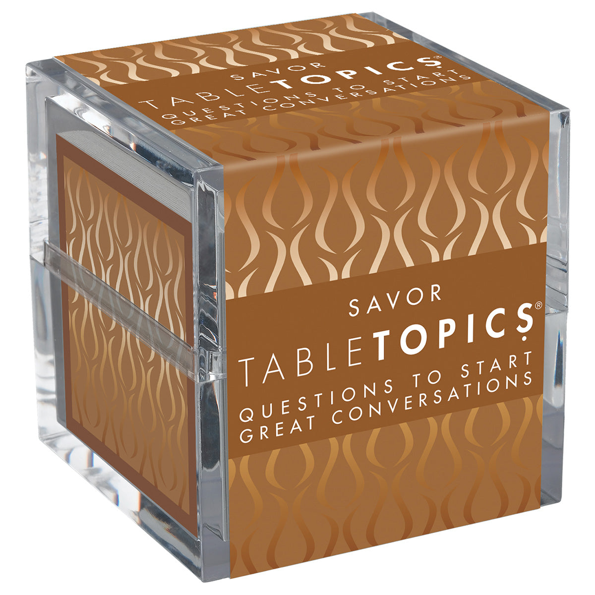 TableTopics® are fun conversation starters for any and every occasion. Our thought-provoking questions have helped millions of people spark engaging, meaningful conversations. Each themed conversation starter set and Prompted™ Journal is full of questions you would have never thought to ask, and the best part is that you’ll get to know your friends, family, and even yourself better. So, skip the small talk — enjoy connecting through great conversation.